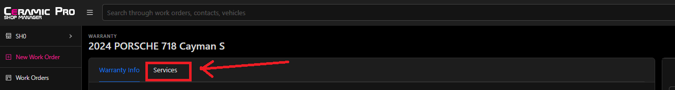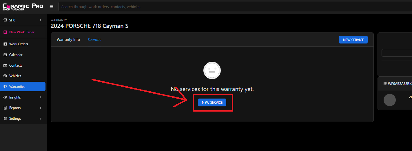 - Go to the 'Warranties' tab in Shop Manager and enter the VIN of the vehicle to pull up the warranty