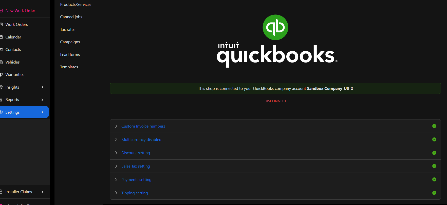 You'll need to make sure to match all the services and products you have in Shop Manager to make sure they sync over to Quickbooks when used in a work order.