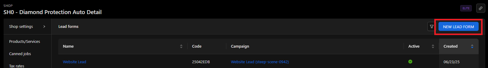 - Once it's activated, you can go to Settings -> Shops -> Your Shop Name -> Lead Forms