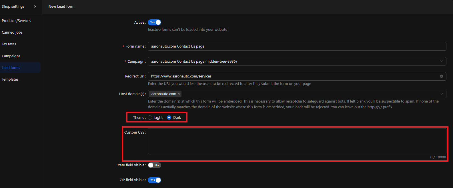 As for the 'Custom CSS' section, this is where you can add custom CSS to add different designs to the lead form. This part is optional.