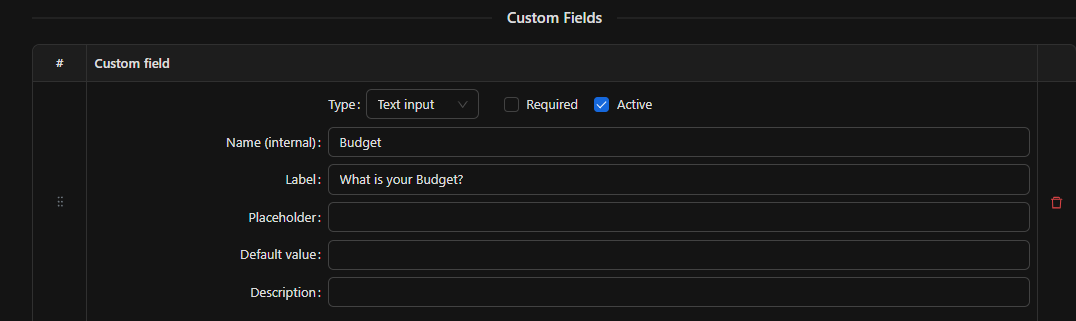 - Then you can add custom fields to the lead form by clicking the '+Add Custom Field' button.