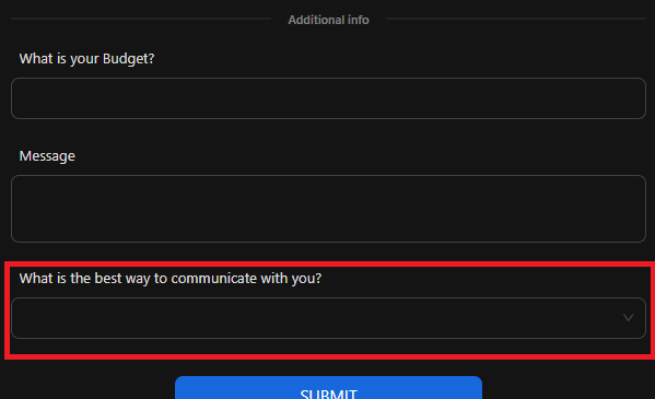 - In the 'Types' field, you can choose these different options: Text input, Text area, Select. When making the fields, the 'Name (internal)' section is where you can enter in a name that only you'll see. And in the 'Label' section you can enter the name of the section that will be shown to leads.