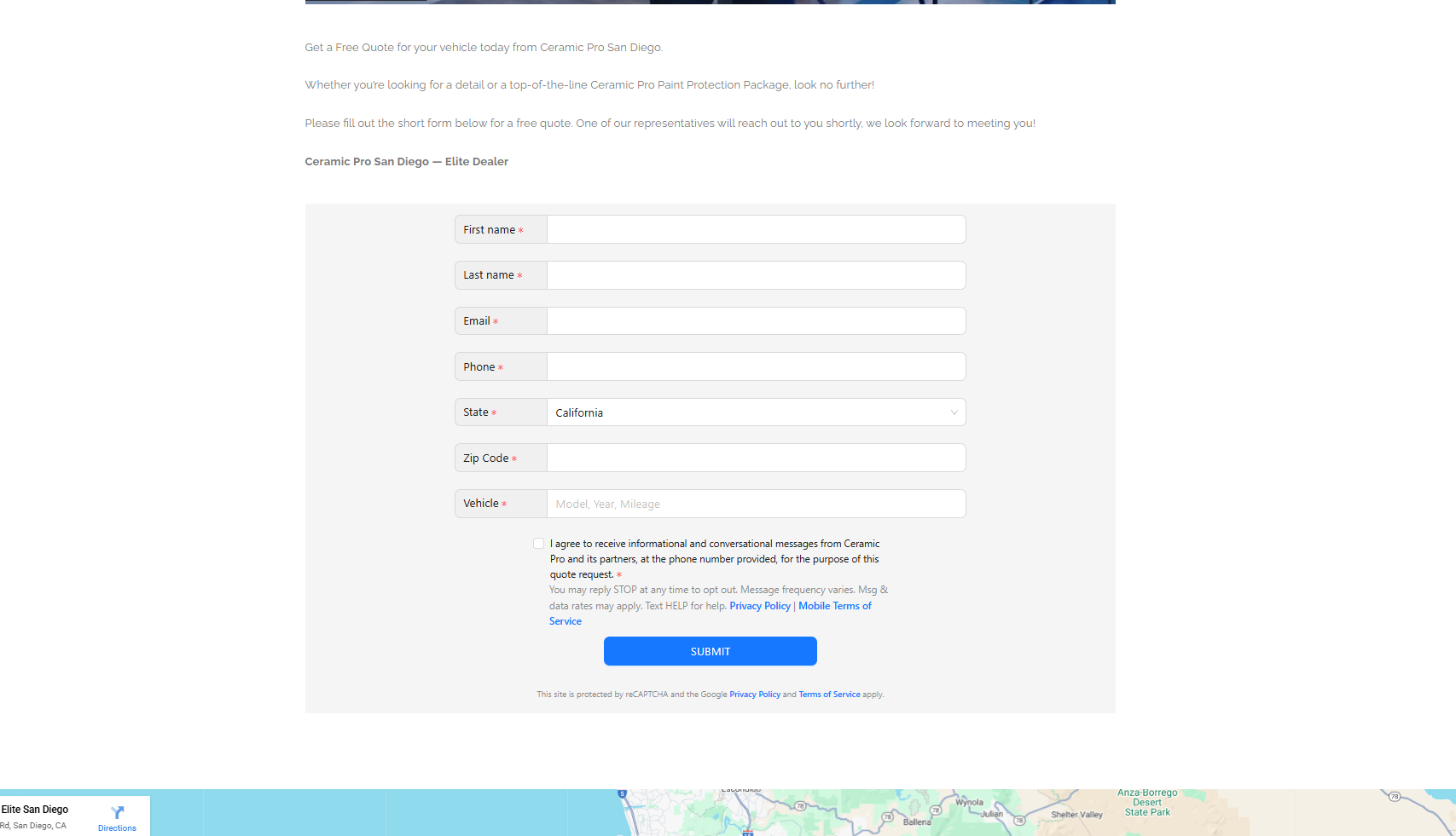 - Then the lead form will look like this on a website. You can view this lead form here at https://ceramicprosd.com/get-a-free-quote/.