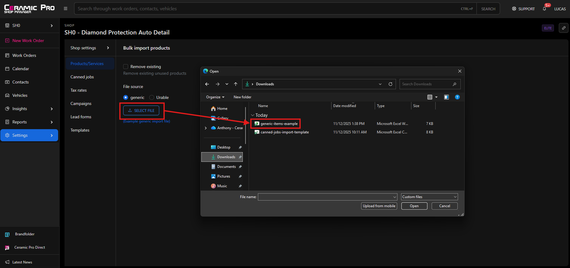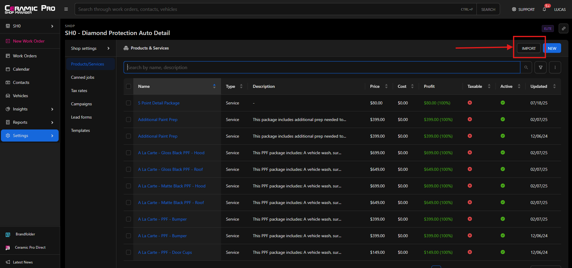 Bulk importing lets you quickly upload your products or canned jobs into Ceramic Pro Shop Manager using a CSV file. Follow the steps below to complete the process smoothly.